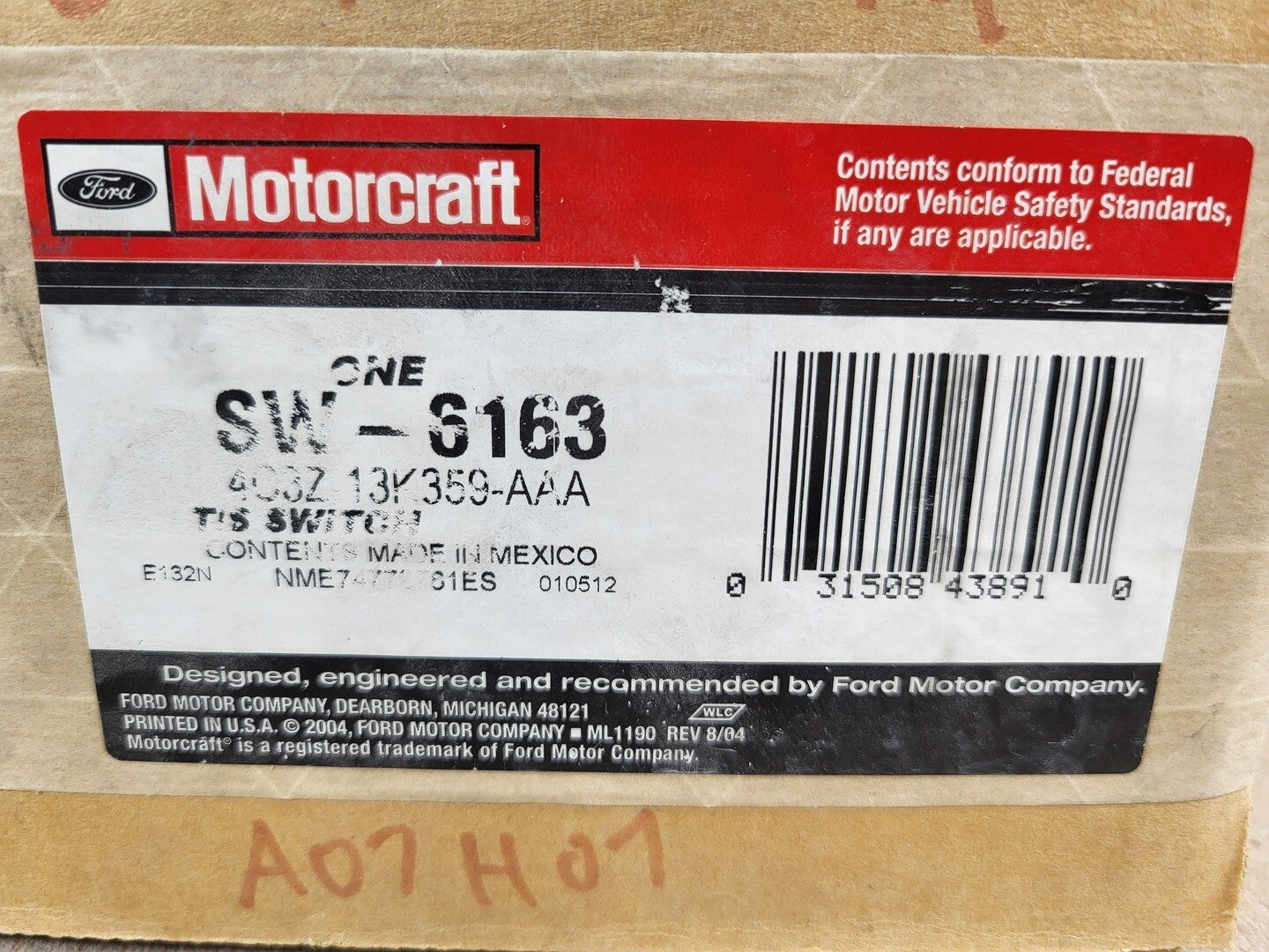 Motorcraft Turn Signal & Hazard Switch SW-6163