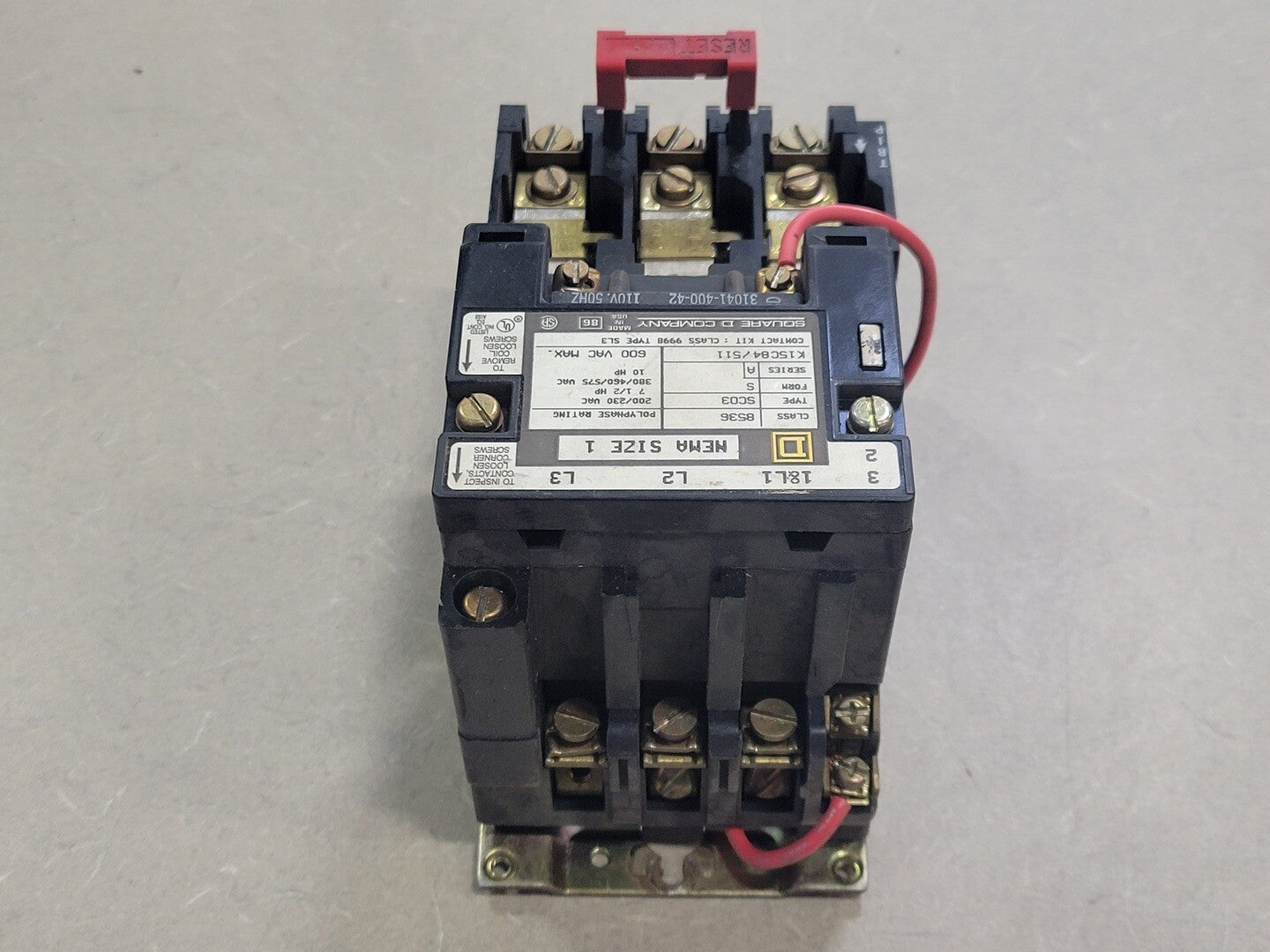 Class: 8536 Type: SCO3 Form: S (Separate control unit) Series: A Poles: 3 NEMA Size: 1 Enclosure: Open Style Type of Overload: Melting Alloy 3 Coil Voltage Ratings: 110/120 VAC, 50/60 Hz Polyphase Ratings: 200/230 VAC @ 7.5 hp, 460/575 VAC @ 10 hp |