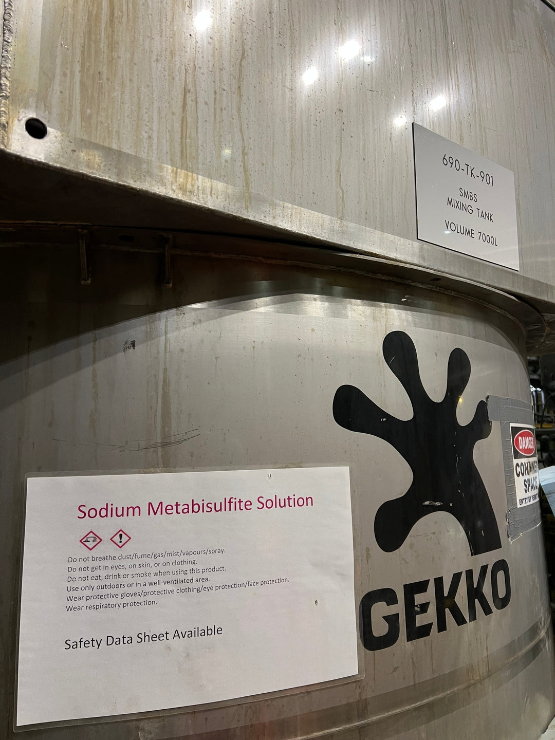 PDF ManualSolution: Sodium Metabisulfite Mixing Tank Volume: 7000 L Max. Operating Height of Liquid: 1850 mm Motor Rating: 4 kW Max. Flowrate: 200 L/min Max. Pressure: 392 kPA Connection Sizes: 50/40 mm Storage Tank Volume: 12000 L Max. Operating Height of Liquid: 1780 mm Motor Rating: 1.5 kW Max. Flowrate: 180 L/min Max. Pressure: 156 kPA Connection Sizes: 40/25 mm |