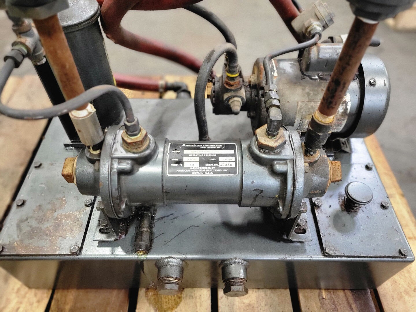 Tube Side Passes: One Pass Size Shell Diameter: 3.66" Baffle Spacing: 1.125" Cooling Tube Diameter: 0.375 MaterialsTubes: Copper Tubesheets: Brass Shell: Brass End Bonnets: Cast Iron Baffle Material: Aluminum Nameplate: Aluminum Ratings:Maximum Shell Pressure: 300 psi Maximum Tube Side Pressure: 150 psi Maximum Temperature: 300° F |